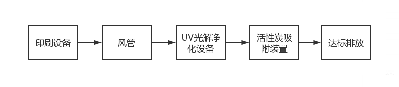生產(chǎn)過(guò)程中產(chǎn)生的印刷廢氣通過(guò)風(fēng)機(jī)的作用下進(jìn)入風(fēng)管,首先廢氣會(huì)進(jìn)入U(xiǎn)V光解凈化設(shè)備,然后印刷廢氣會(huì)進(jìn)入活性炭吸附裝置,最后達(dá)標(biāo)排放。